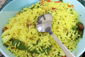 Lemon Rice レモンライスレモンフレイバーの爽やかなライスです。イエローのライスに、赤と緑のチリ、カレーリーフ、粒々のマスタードシード、ブラウンのピーナッツがちりばめられて見た目がとてもかわい … 続きを読む 005 Lemon Rice